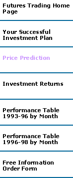 Profit on a futures investment is earned if you buy low and sell high, or sell high and buy back low. While simple in concept, this requires your advisor, to have some idea of where prices will be several day's or weeks from now. That is, it requires some sort of price prediction methodology. Most advisors tend to rely on some variation of fundamental or technical analysis to predict prices. Many investors also spend considerable time and energy attempting to identify new measurements or signals that provide the edge in predicting prices. Stories abound of advisors who claim to have discovered proof-positive techniques for predicting prices, and then offer to sell the information (Software, Hotline, Newsletter etc.) to you for a price. In my experience, genuine foolproof techniques are very hard to come by, and I would advise you to be very careful and skeptical of such grand claims. If they truly own a profitable system, they would never sell it, but trade it themselves.